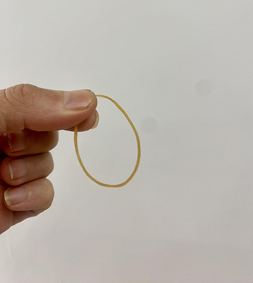 Act excited for their gift as they unwrap it. Say, when they’re holding it up: “Everyone needs a rubber band at some point! You can put it around a rolled-up poster to secure it or something!”