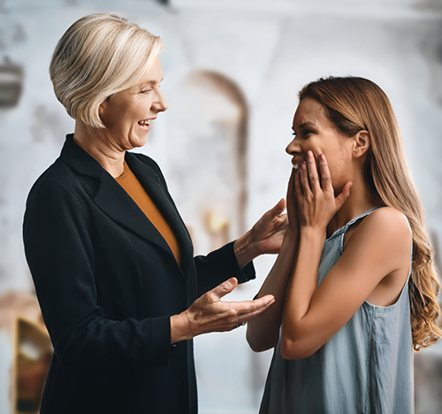 A woman using the “Oh, That’s A Good Start” Move on another woman to make her feel slightly inferior