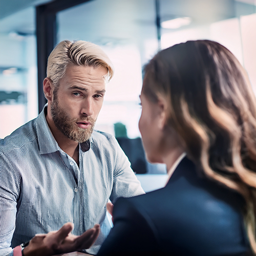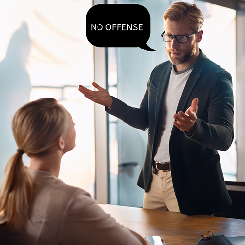 A man saying “no offense” after insulting a woman