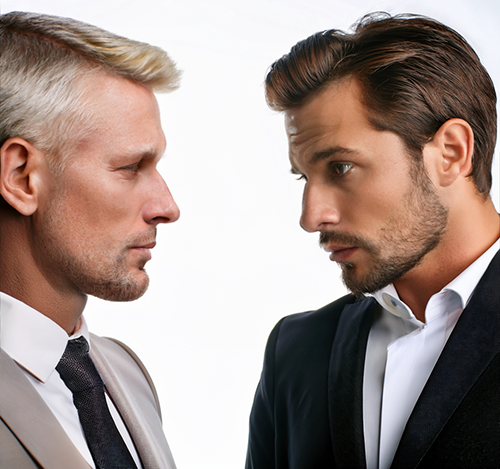 A man gives another man The Signature Look of Doubt