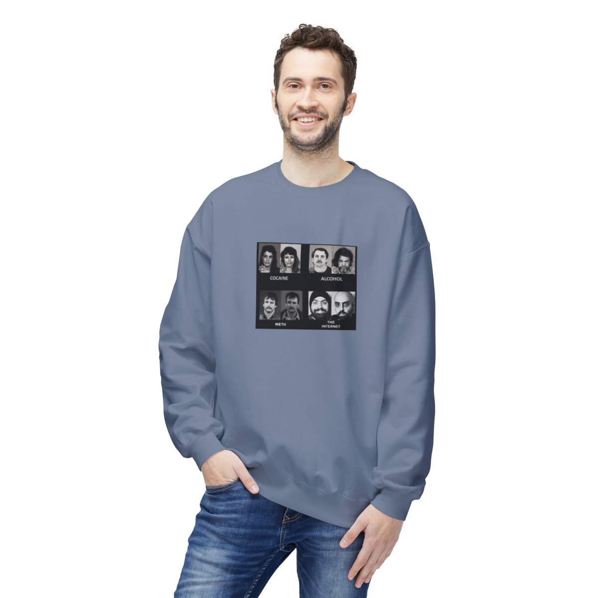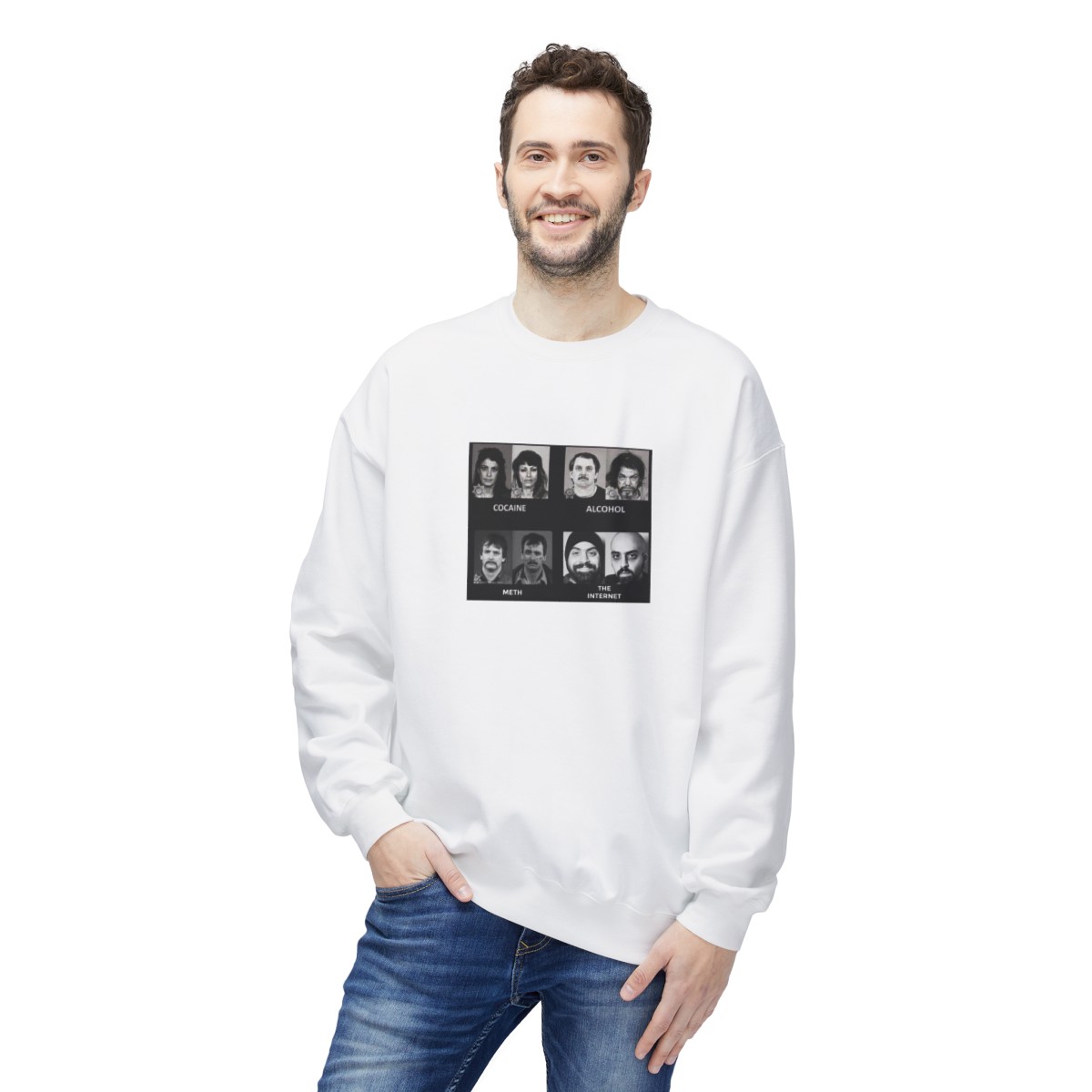 Stay cozy in style with the Gildan® SF000 Before And After Drugs And The Internet unisex sweatshirt. Crafted from a blend of 80% ring spun cotton and 20% polyester, with a brushed interior and 100% ring spun cotton face, it offers unmatched comfort and durability. Featuring a dropped shoulder design for a relaxed fit, this sweatshirt is not only stylish but also eco-conscious. Partnering with Better Cotton to enhance cotton farming worldwide, and made with OEKO-TEX certified low-impact dyes, you can feel good and look even better.