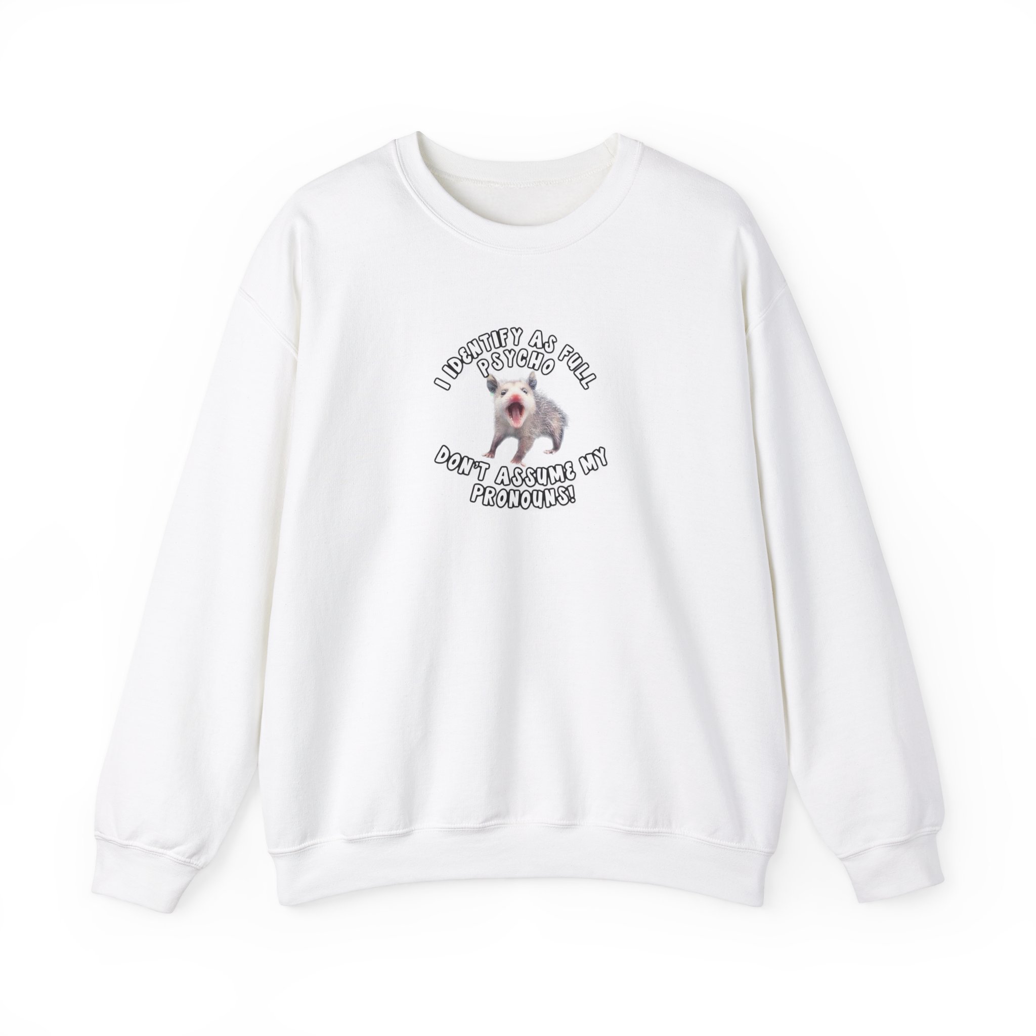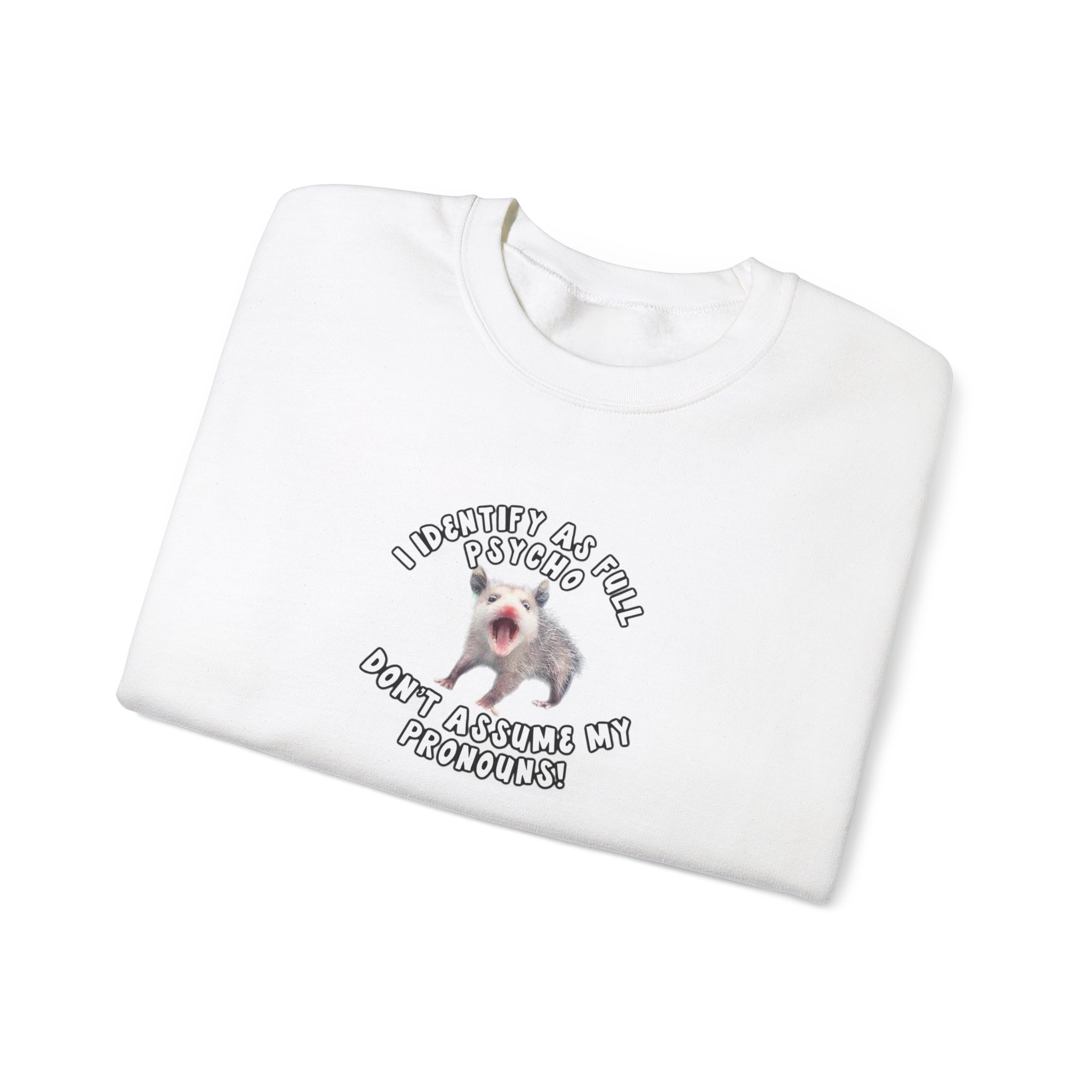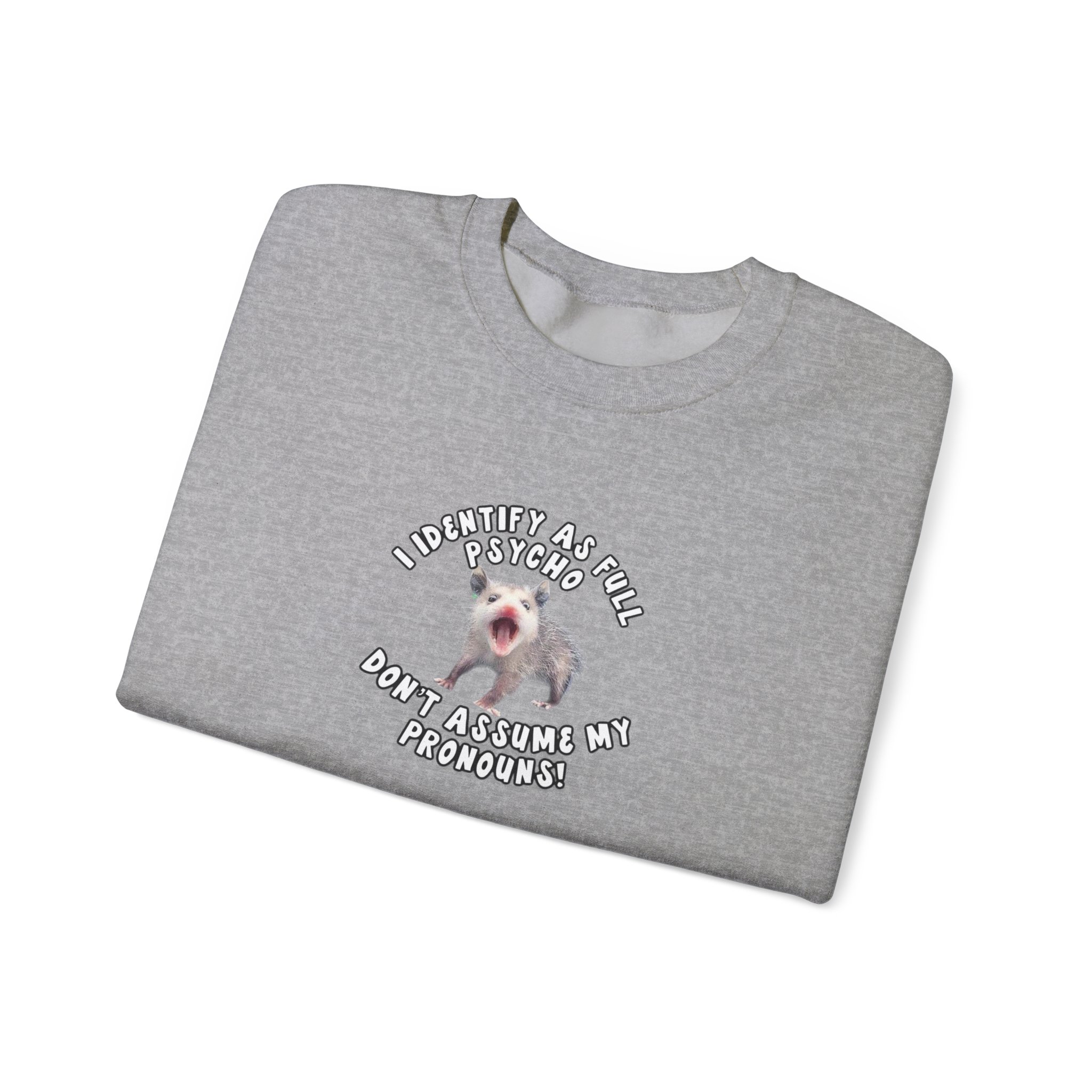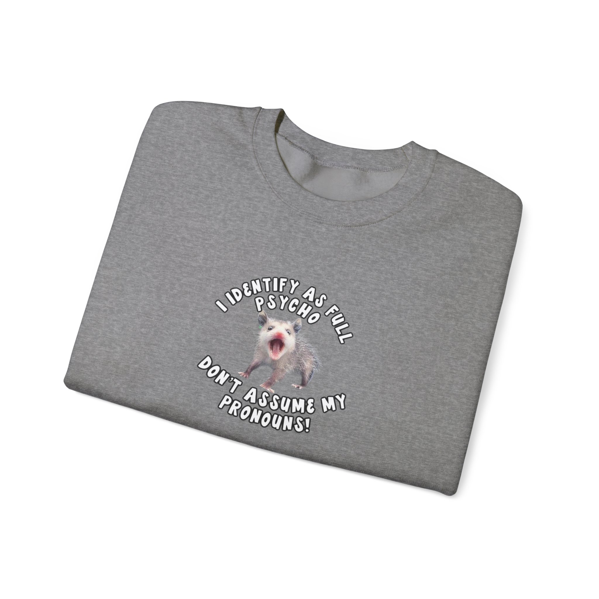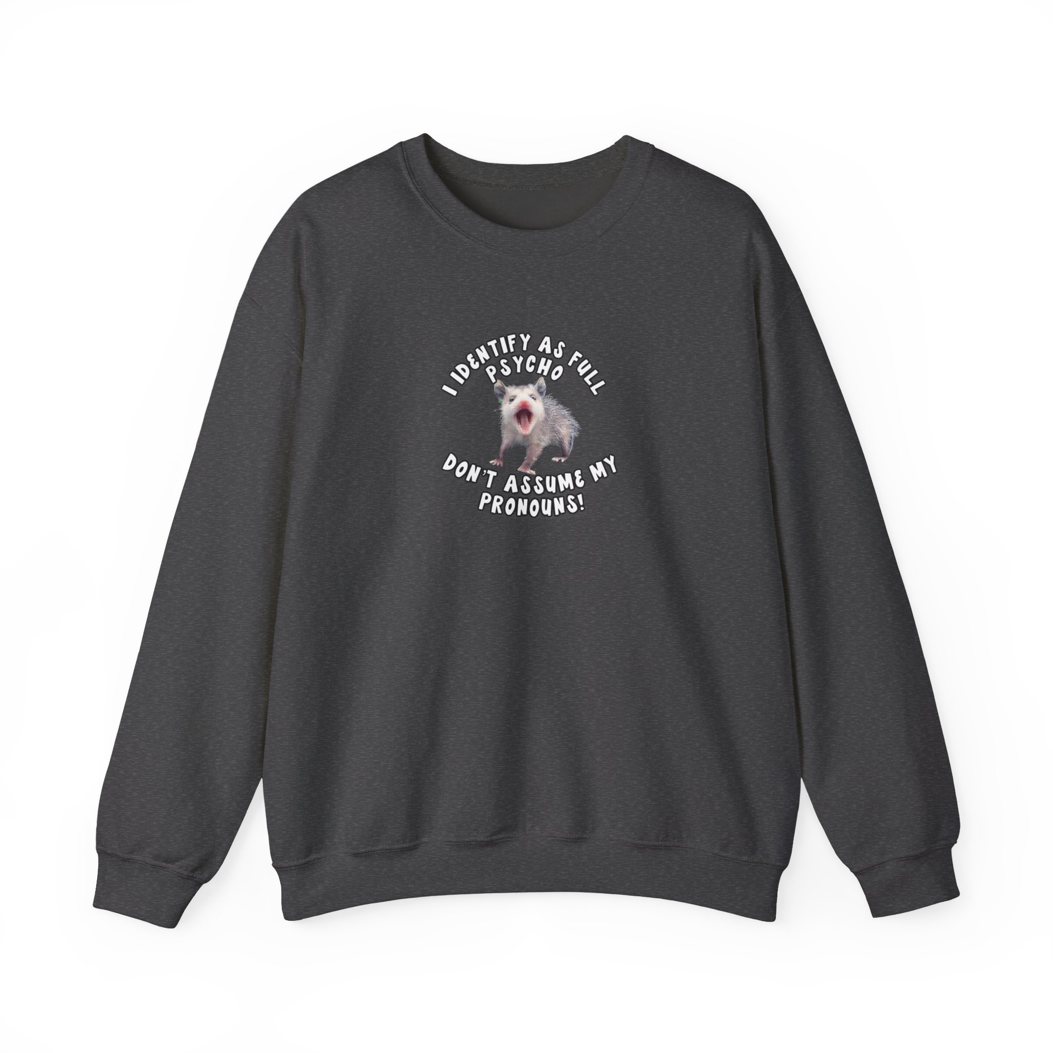 Graphic reads: I Identify As Full Psycho, Don’t Assume My Pronouns