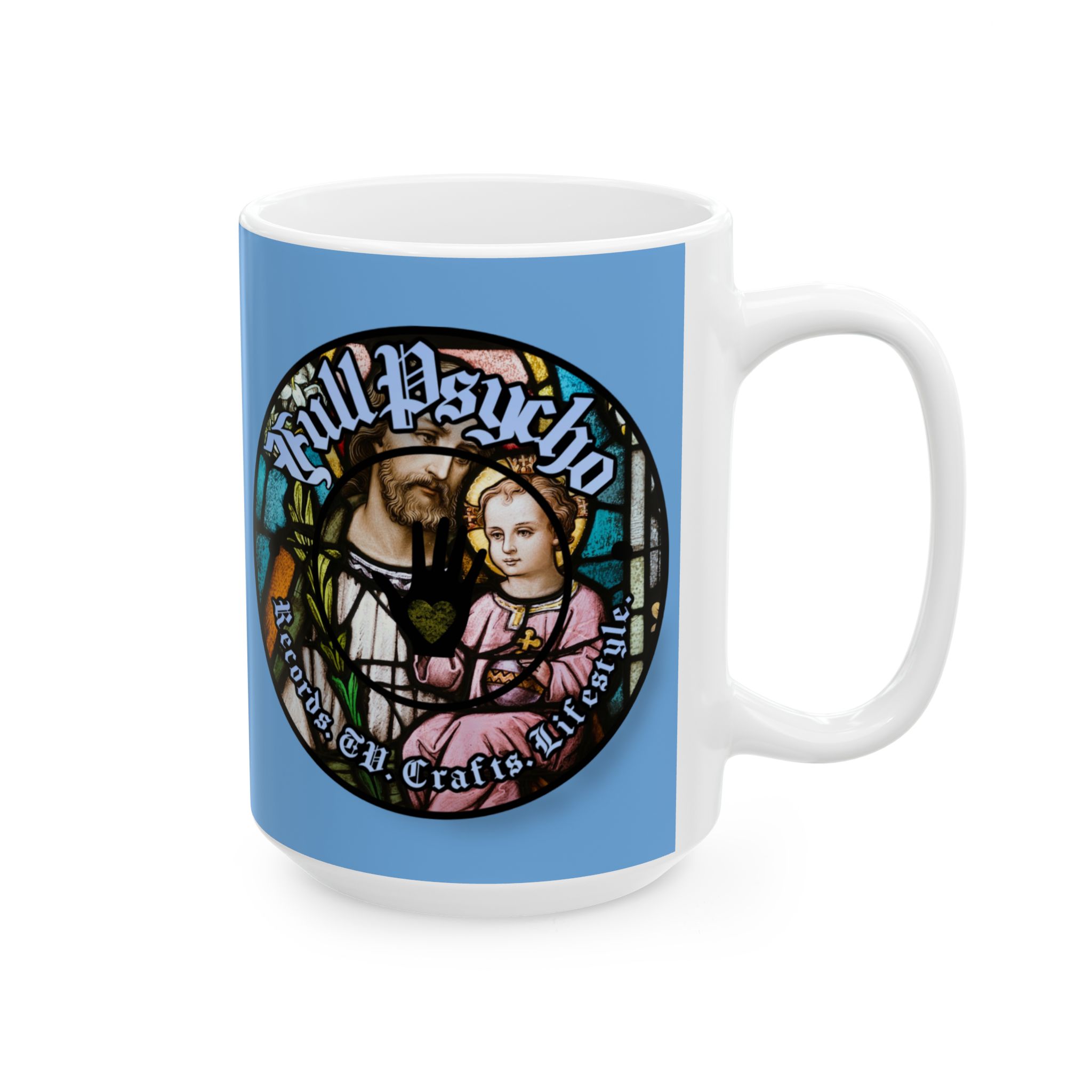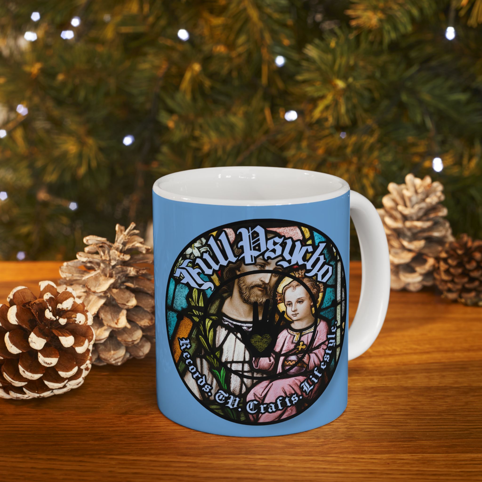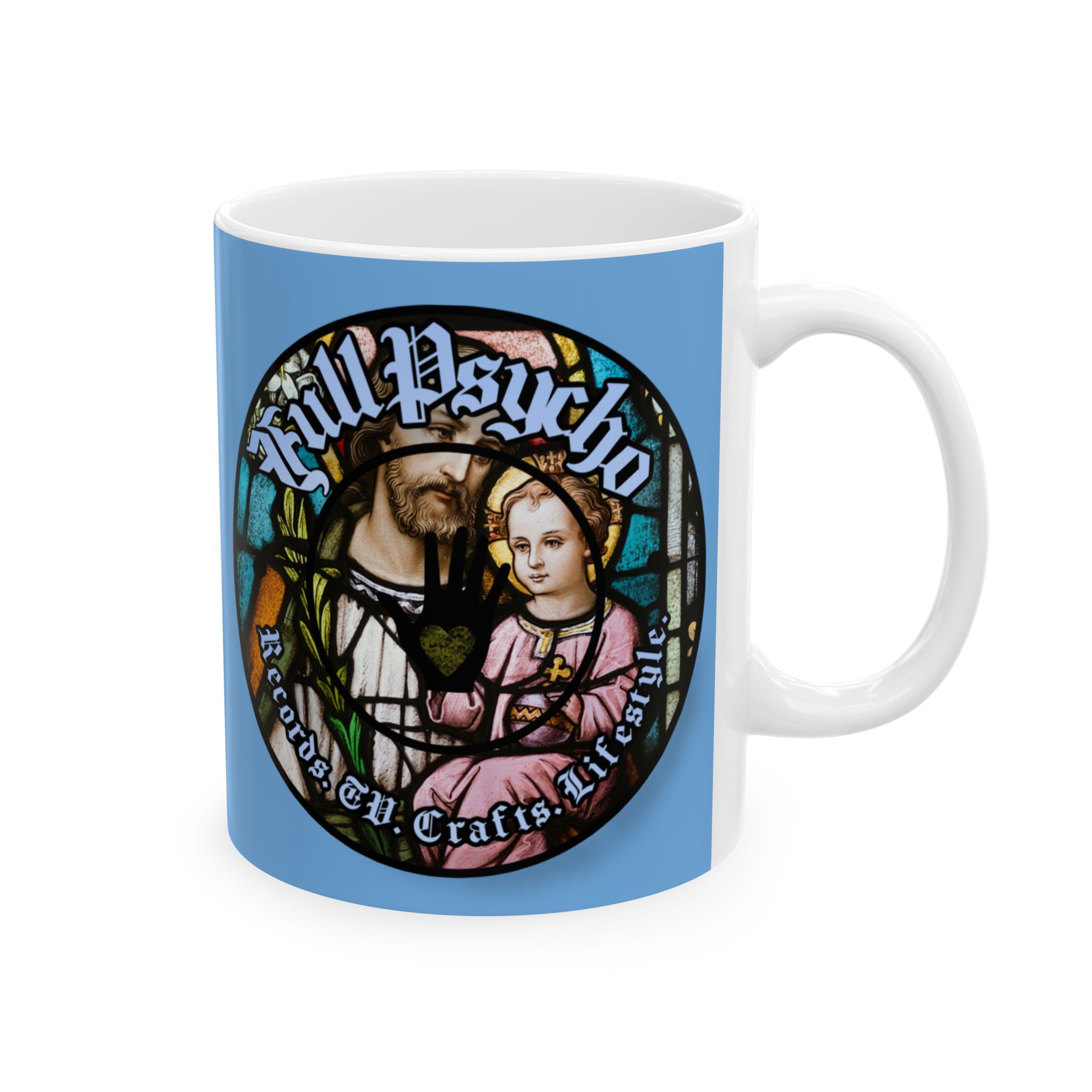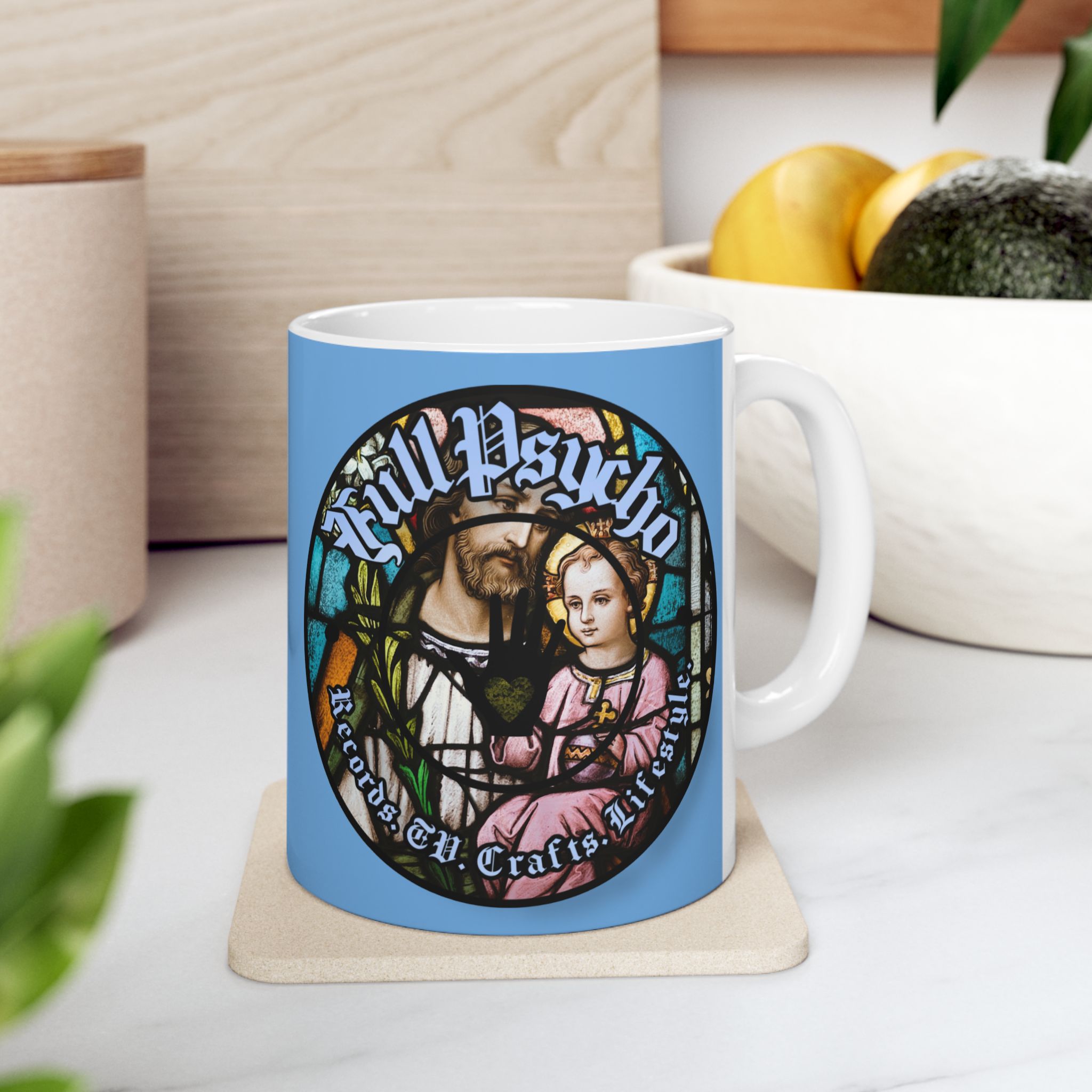 Full Psycho Jesus mug in blue.