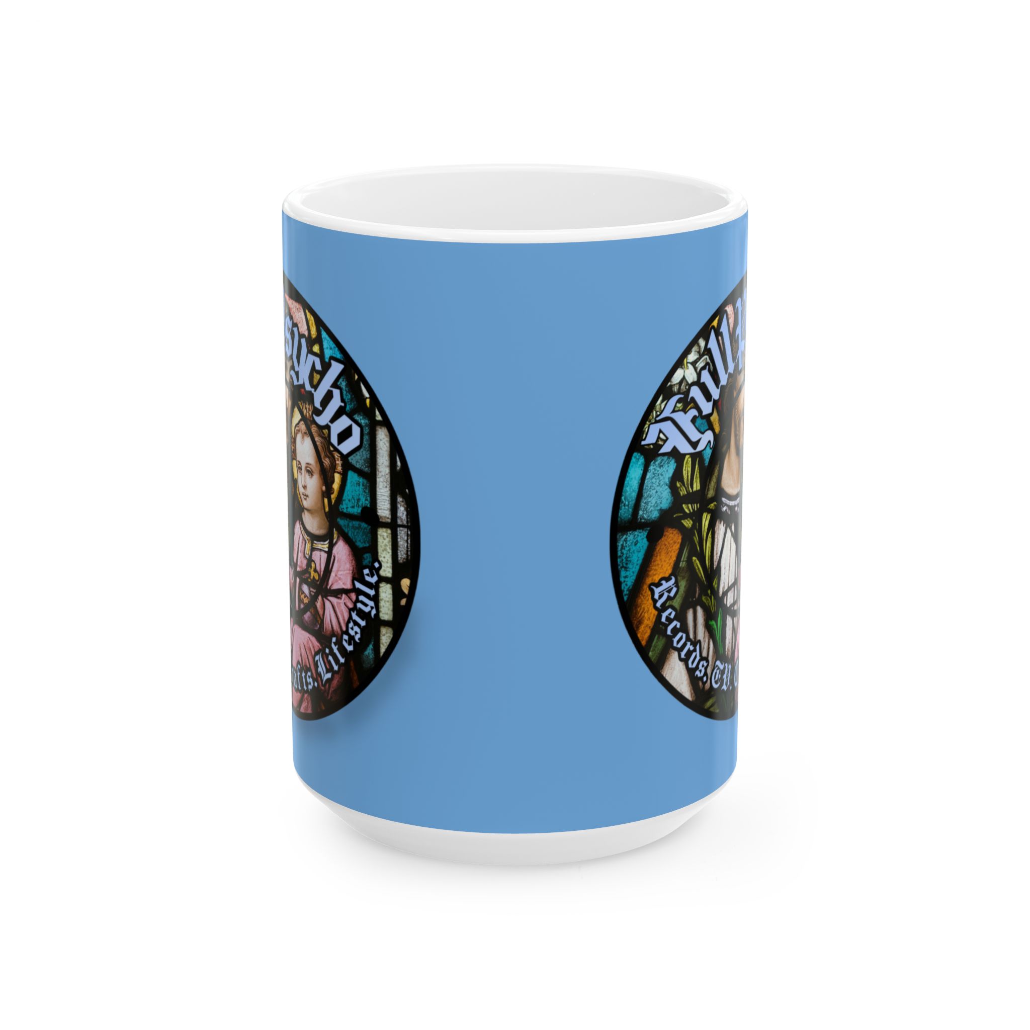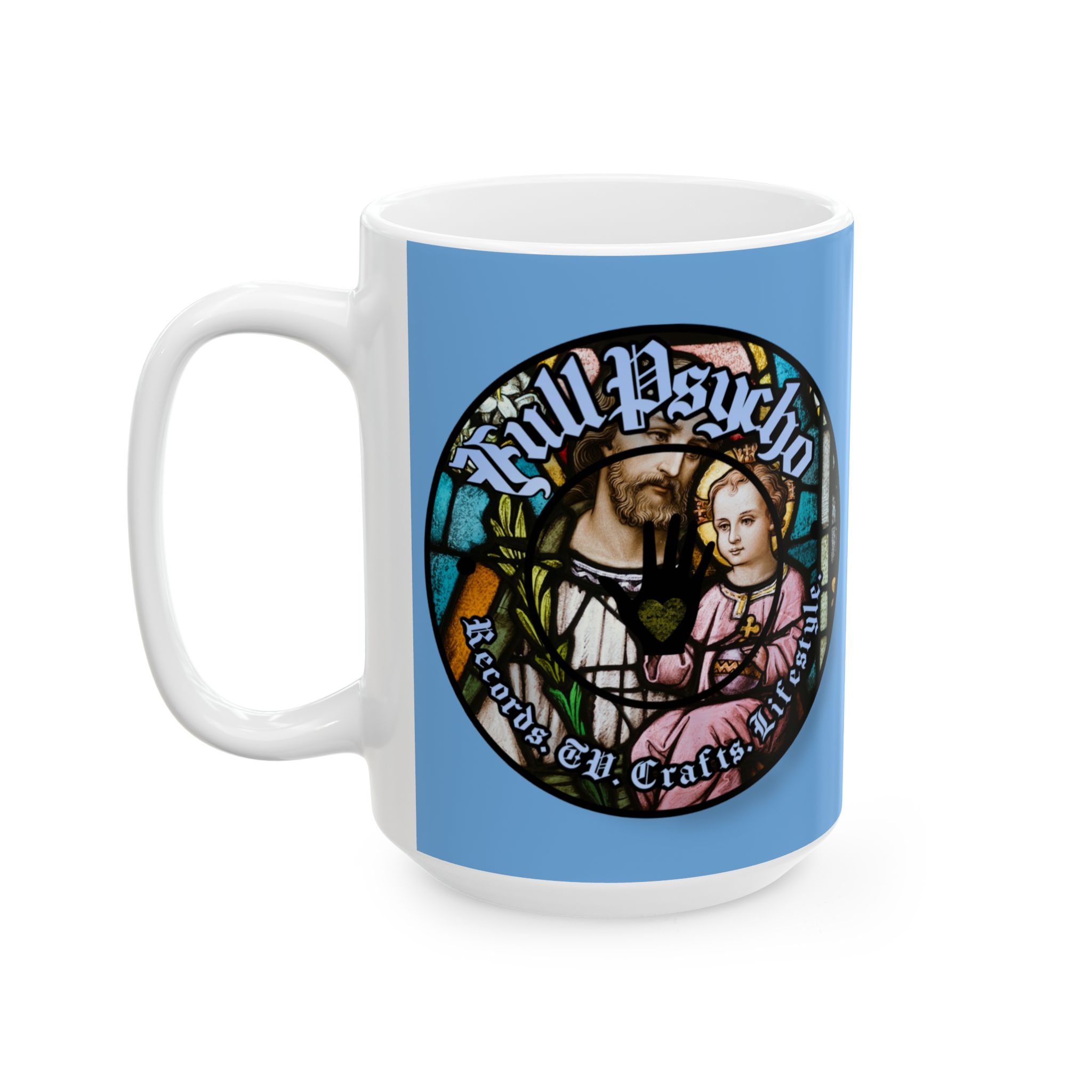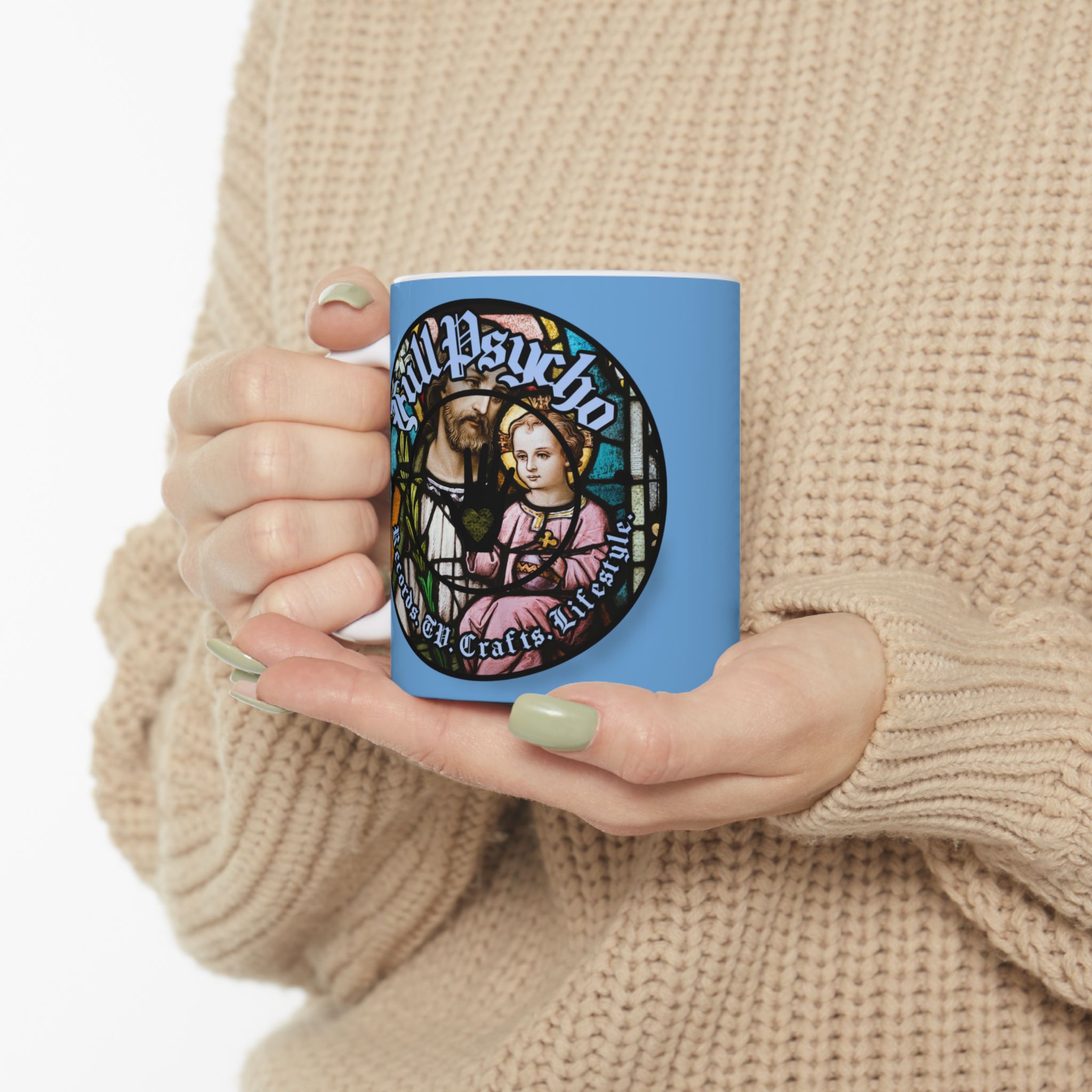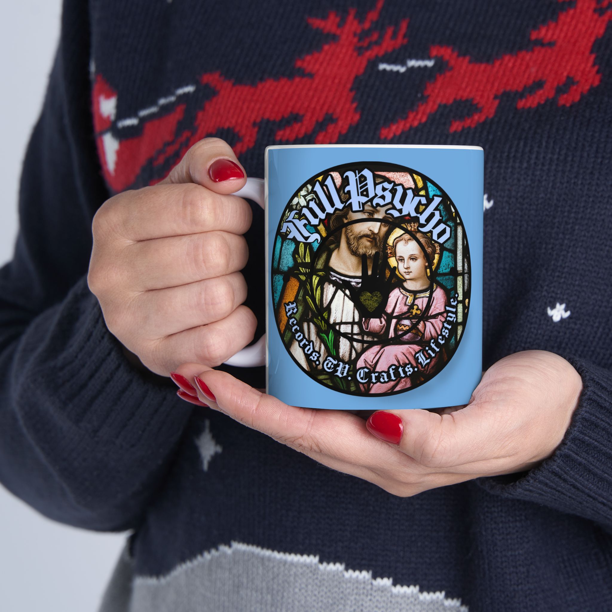 Full Psycho Jesus mug in blue.
