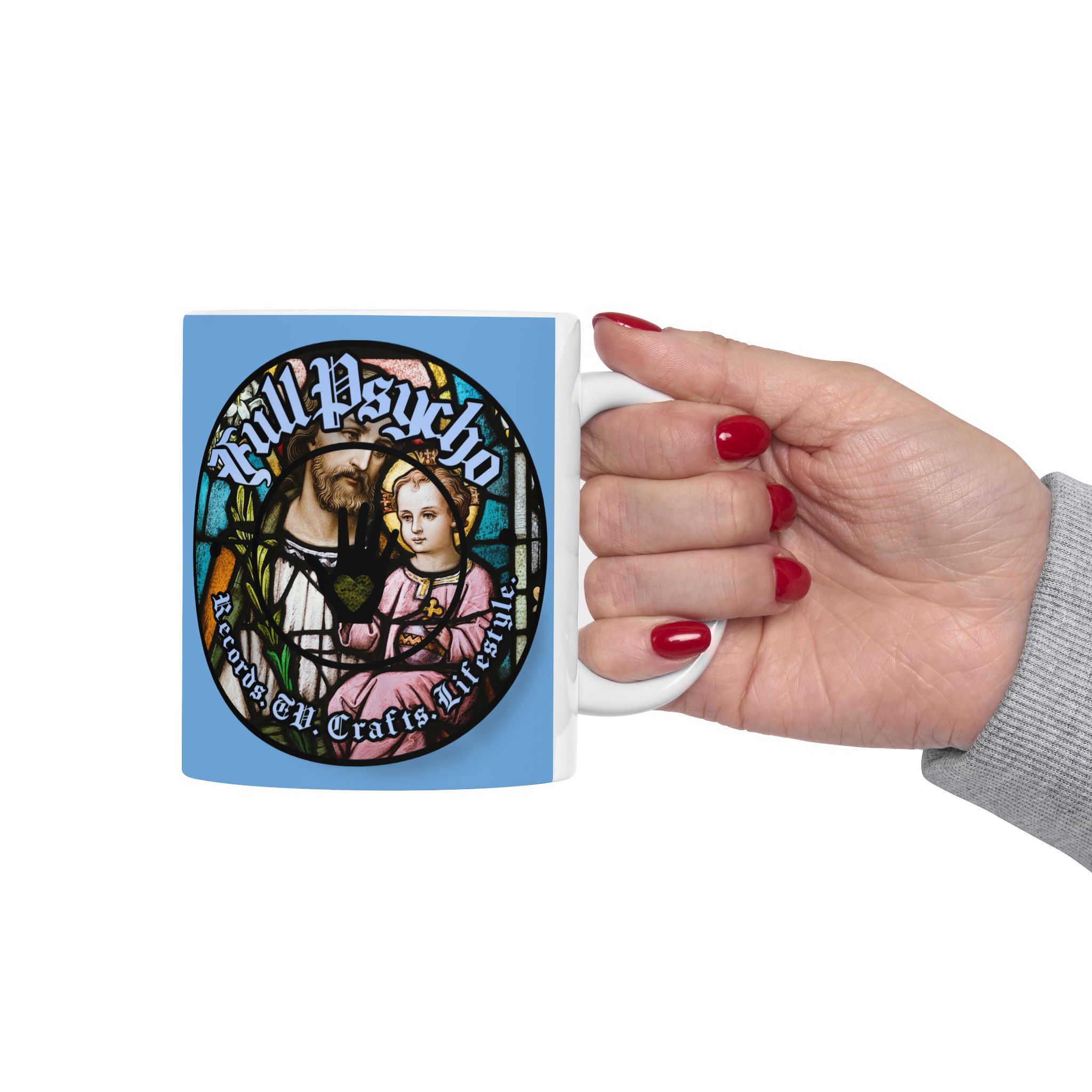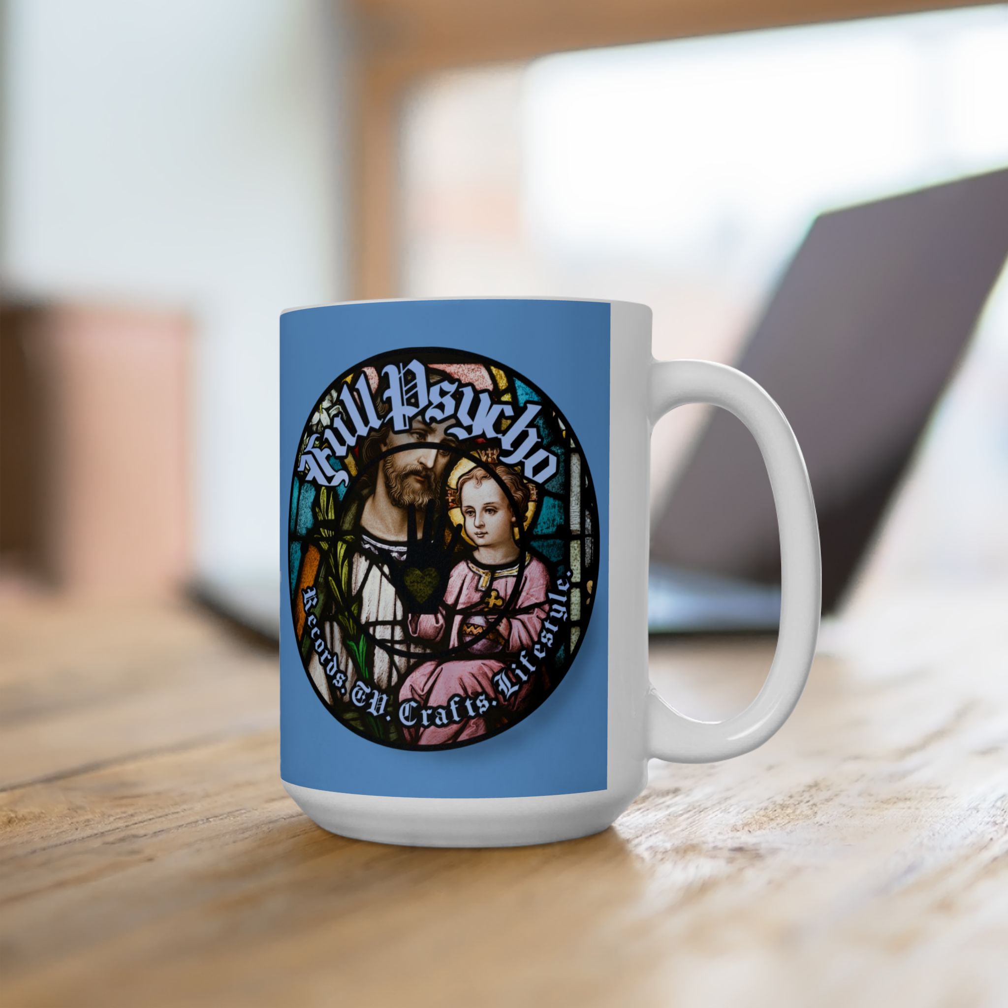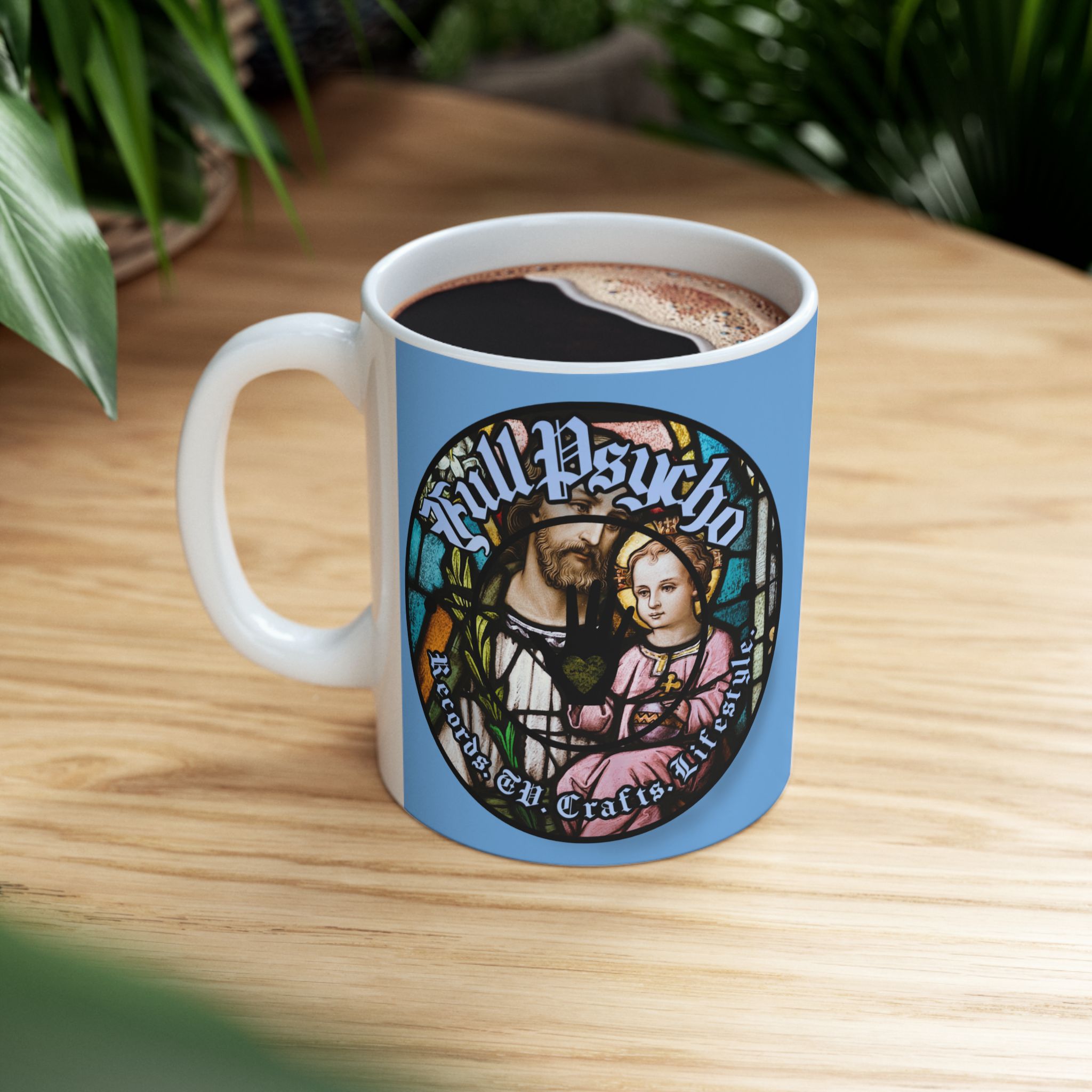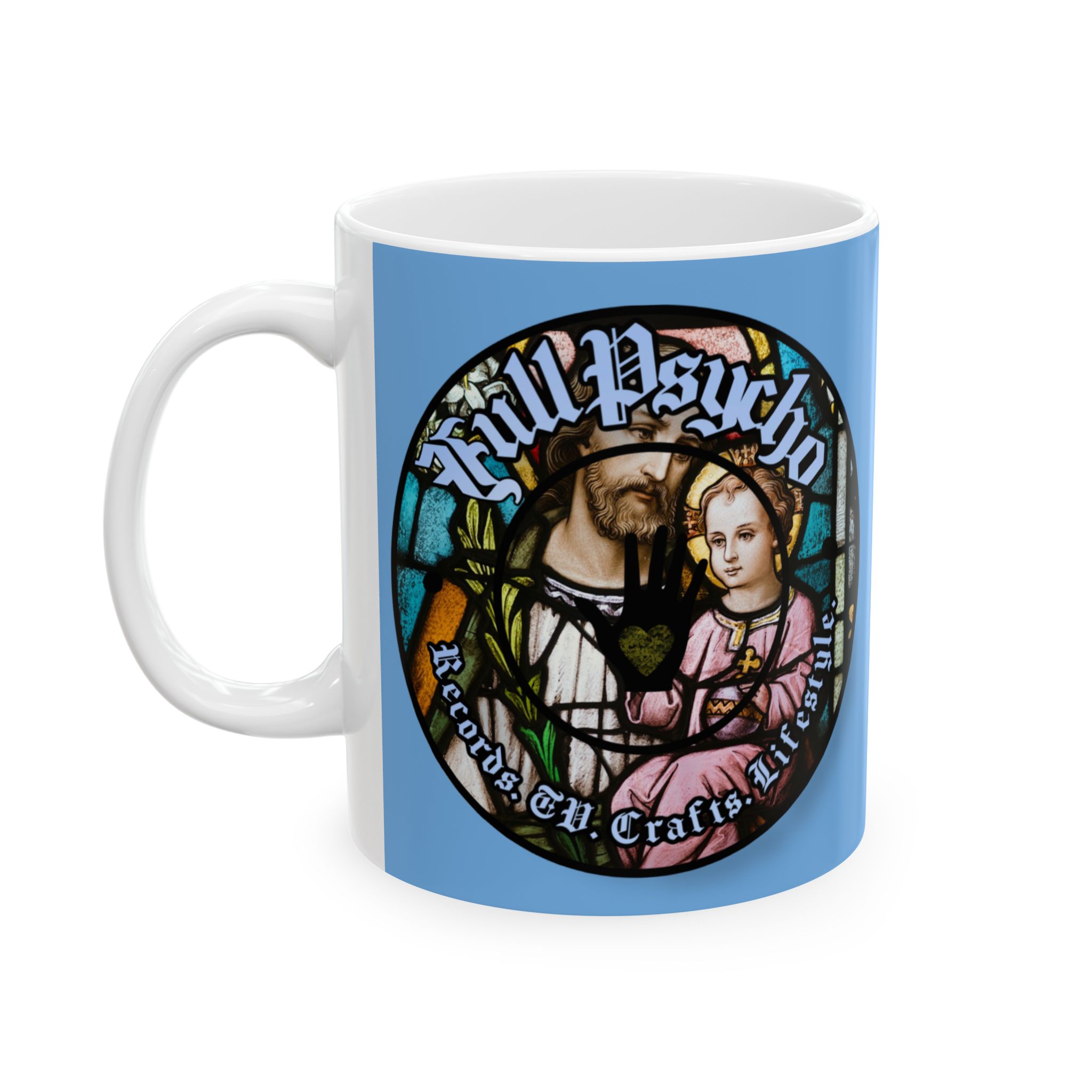 Full Psycho Jesus mug in blue.
