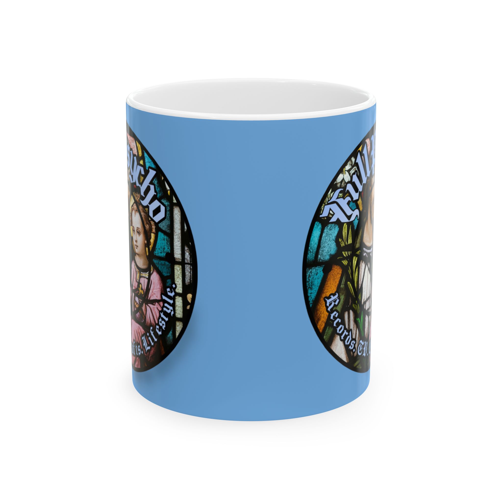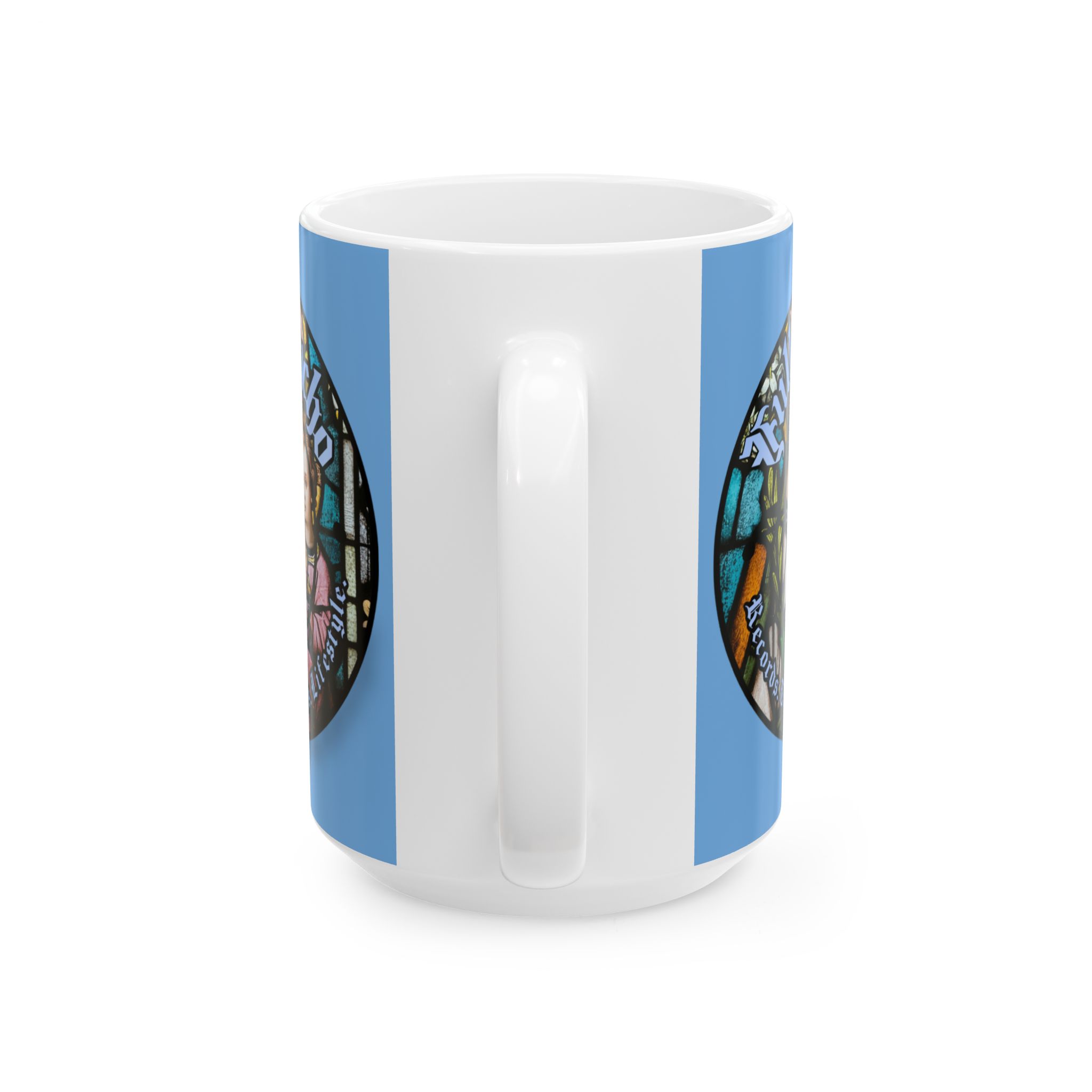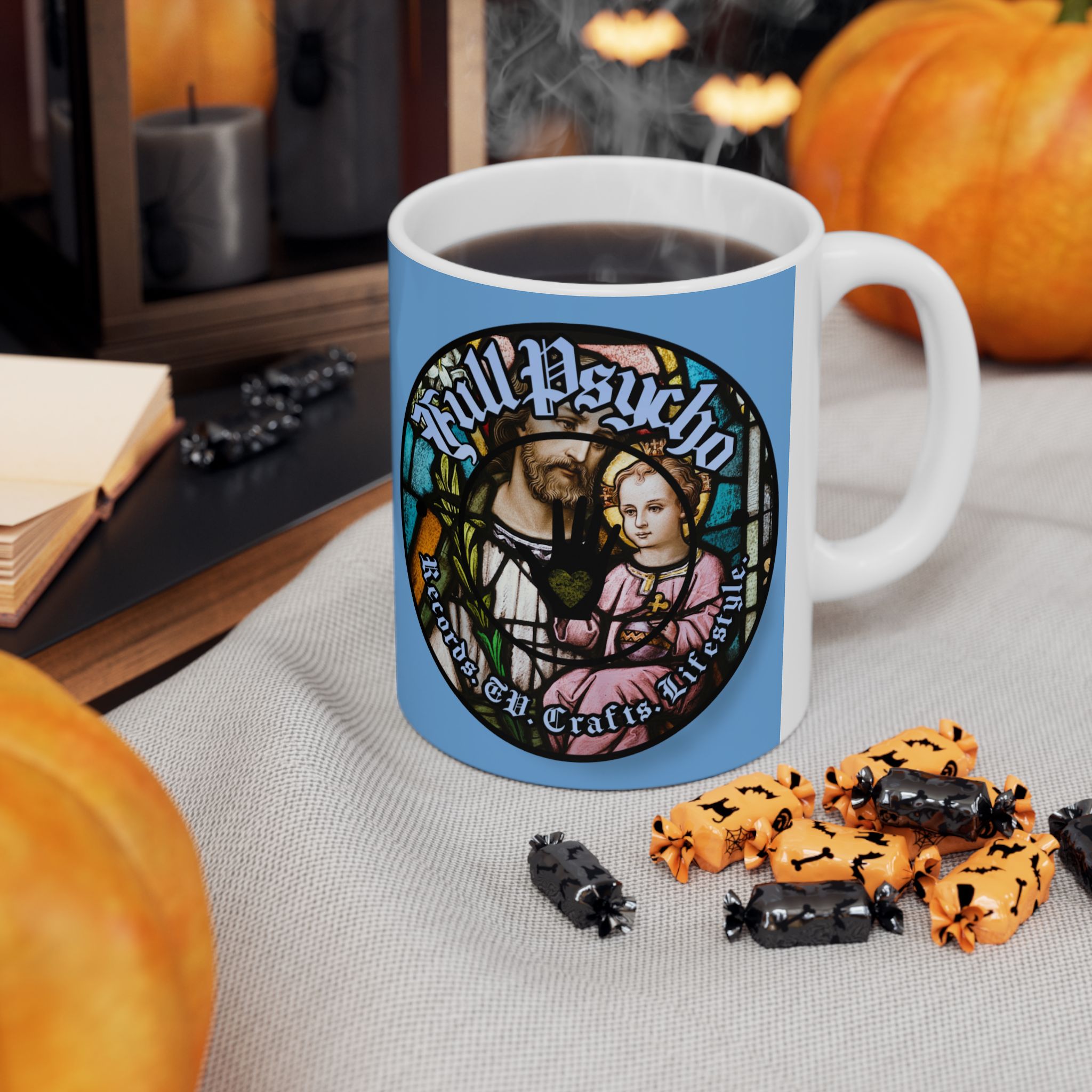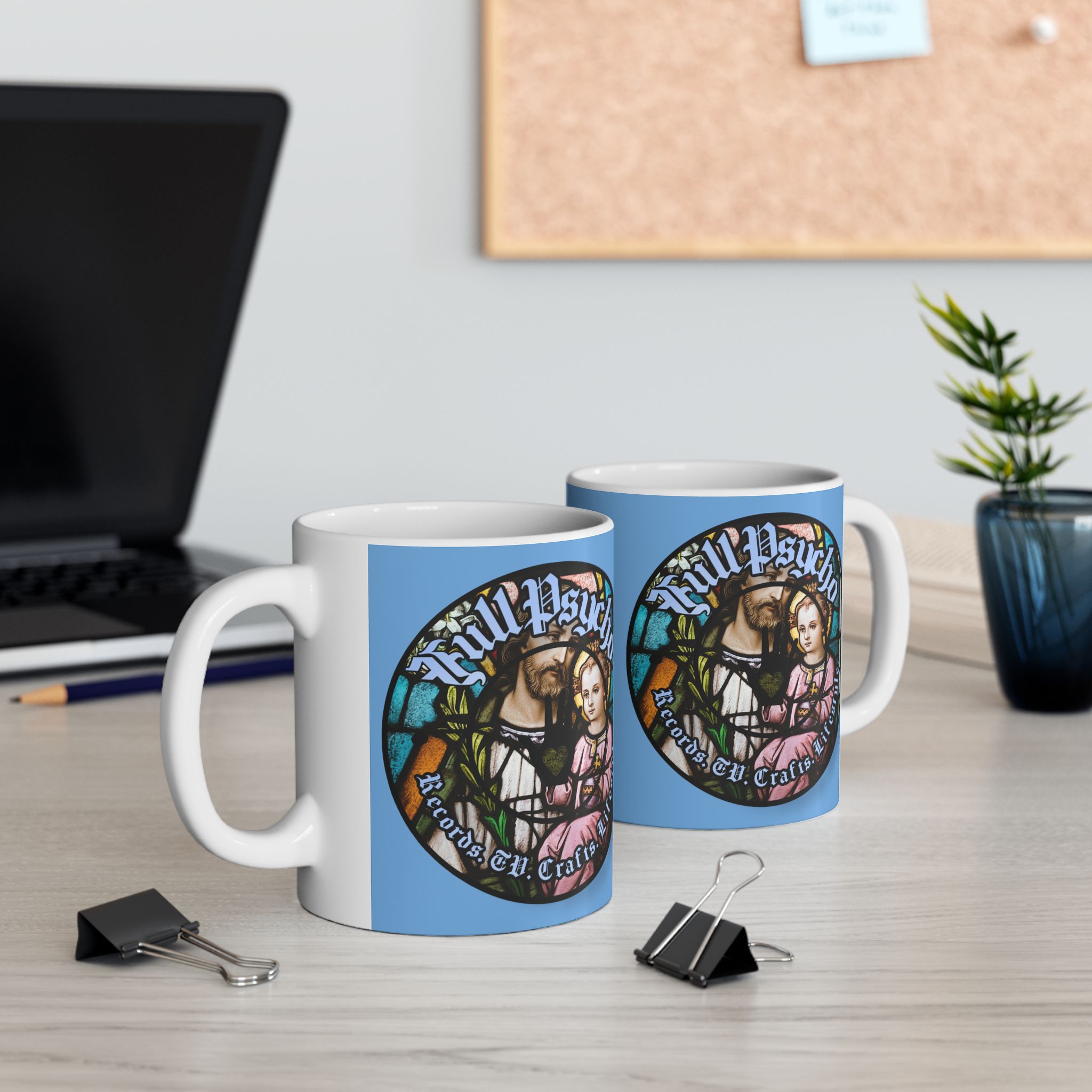 Full Psycho Jesus mug in blue.